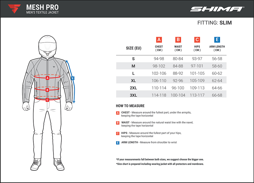 MESH PRO to idealna letnia kurtka dla zwolenników przyjemnej i płynnej jazdy. Kurtka wyposażona jest w certyfikowane protektory i slidery barkowe oraz wzmocniona jest odpornym na przetarcia materiałem HITENA® o wysokiej gęstości splotu. MESH PRO posiada regulację talii, a po bokach harmonijkowe panele elastyczne, które poprawiają dopasowanie i komfort jazdy. Obszerne panele z siateczki mesh na klatce piersiowej, plecach i rękawach zapewniają wysoki poziom przepływu powietrza, gwarantując maksymalną wentylację. Odblaskowe panele poprawiają widoczność kierowcy po zmroku.