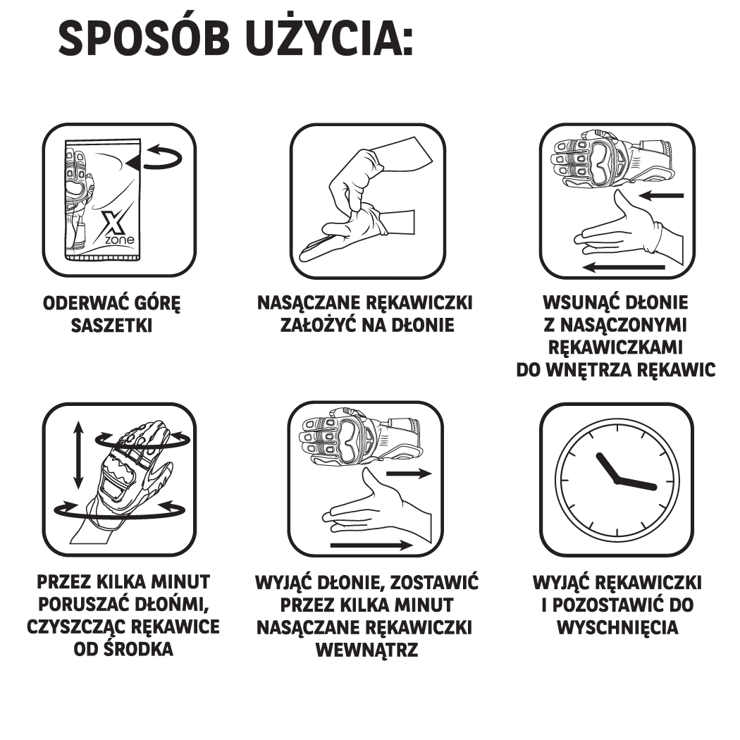 Pierwszy na rynku produkt do skutecznego czyszczenia wnętrza rękawic. Innowacyjna saszetka zawiera bawełniane rękawiczki, nasączone specjalnym preparatem o eksperckim składzie, który nie tylko czyści, ale także neutralizuje nieprzyjemne zapachy.